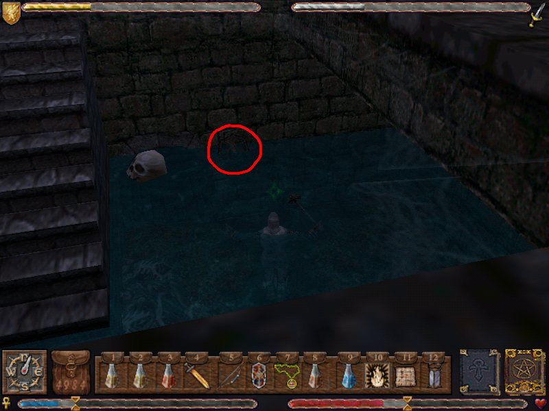 - Destroy the web still blocking the passage and head North and up the ramp.
